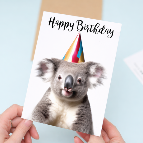 • Birthday Card For Him or Her Fun Birthday Card of A Koala Happy Birthday Card For Mum, Dad, Sister Brother