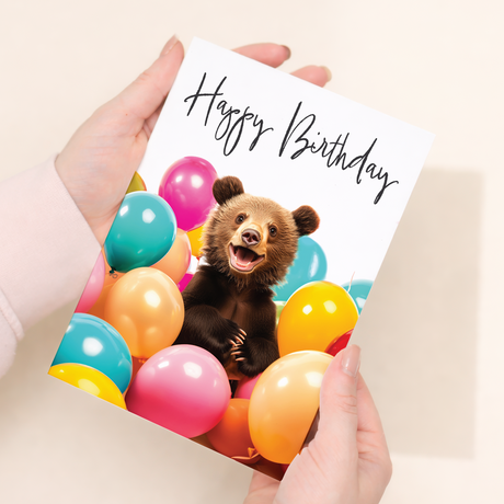 • Birthday Card For Him or Her Fun Birthday Card of A Brown Bear Happy Birthday Card For Mum, Dad, Sister Brother