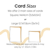 ♻️ Eco-Friendly Materials: Our anniversary cards are printed in a sophisticated matte finish on 5.5x5.5 Inches or 14x14cm card perfect for conveying your heartfelt messages. Committed to environmental care, we use no plastic packaging. Each card is paired with either a Kraft or White envelope, ensuring a completely sustainable gift.